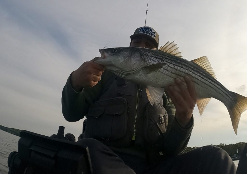 If you’re vessel-bound, cover water with trolling lures and keep an eye out for birds and boils. If you find a bunker school, it’s usually a sure-bet that bass will be underneath them if the bait is on the surface. Flutter spoons have been a popular choice this past week, and according to those anglers I’ve talked to, they’re out-performing other lures especially when around bunker schools.