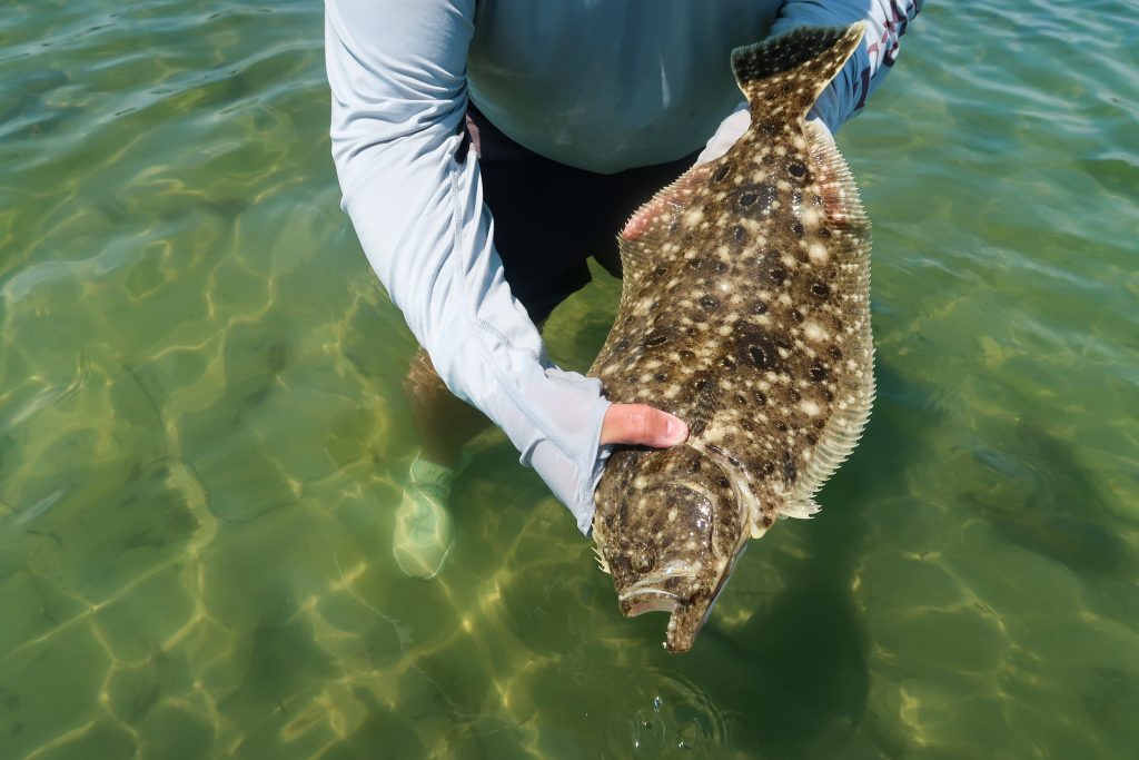We took some photos and enjoyed the warmth of the shallow water before the bite slowed and we decided to get back to the sand so our ladies wouldn’t sunburn too badly. Overall, we caught around 12 fluke, 3 or 4 of which were keepers, in 90 minutes of fishing. Not bad!