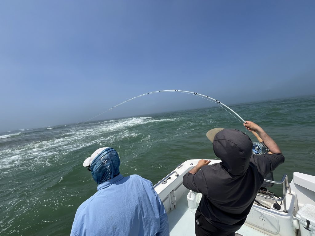 When the weekend rolled around I hopped on a local charter boat by the name of Captain Tom’s Charters. The owner, Jason, put us on an epic bite in the rips. Fish blasted squid flies, pencil poppers, and extra-large Slug-gos; the key was to cast into the foamy whitewater.