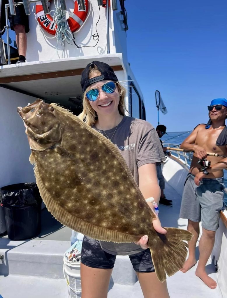Captain Chris at the Montauk Anglers Club reports: “It was a tough week for the striped bass fisherman in Montauk; the bass have moved on to other grounds, but they will be back soon. Luckily, there were plenty of other species to catch in the meantime. Big fluke, big porgies, black sea bass, and triggerfish. Bottom fishing is really good right now. If you can get through the porgies when you’re fluking, you can get your limit easy! My good friend Cristina DaCosta came back for a quick visit from her home and job in the Florida Keys. She fished with Tommy on the Hammertime and caught her limit of jumbo fluke. Offshore, the tuna fishing has been very good, with mahi-mahi, showing up, and wahoo!”