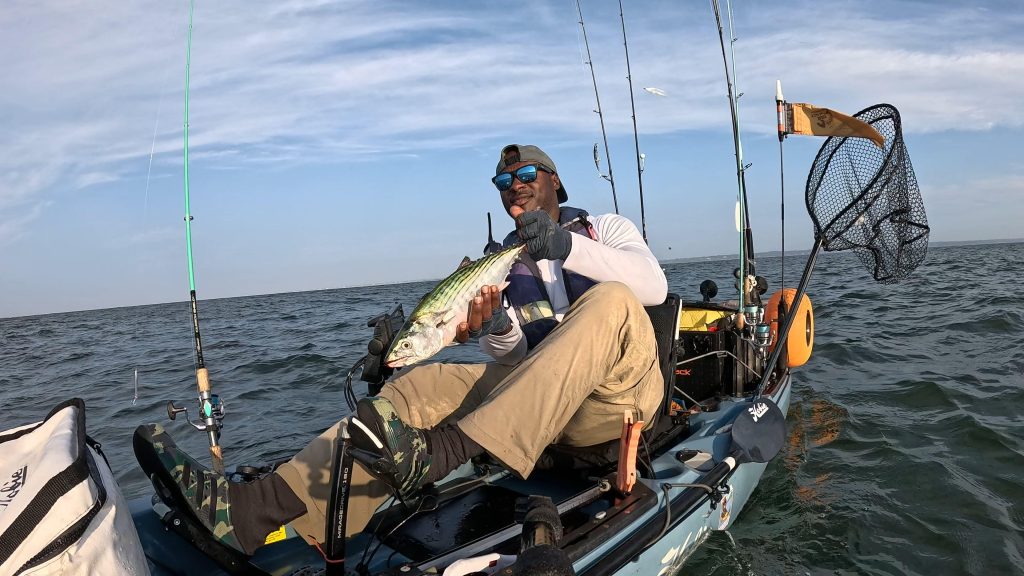 Dustin at Rhode Island Kayak Fishing Adventures told me that the early fall run activity has continued over the past week. There has been early morning and sunset blitzes of striped bass, bluefish, and bonito. Most of the blitzing striped bass are in the 30-inch-plus class, however the larger 40-inch-class stripers are still around and have been biting very good recently. Bluefish have become much more active than they have been all year which has made some really fun fights in the kayak. The bonito bite has been very consistent, which leads Dustin to believe that we will see the first false albacore within the next two weeks. Black sea bass and fluke has been on and off from week to week. This past week hasn’t been great for those bottom dwellers however August is a great time to target them. Tautog is open but Dustin hasn’t focused on them just yet. The fall run is an exciting time for all fishermen and while there is time and dates left on the calendar now is the time to schedule your kayak fishing trip!
