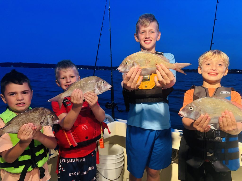 Captain Stu from Northport Charters reports: “All the kids got in on the jumbo porgy bite on Monday. The high winds and rough seas in the Sound have mostly kept us fishing inside the bays this week. That said, we’re still catching porgies to 2-1/2 pounds and some nice keeper sea bass as well. We had some 6-year-old boys catching porgy on Monday and it was their first time catching keepers—they are now hooked for life! Plus, we had a nice fight with 4- to 6-pound blues nailing our high-low rigs, eating squid & spearing. Also, there were quite a lot of snapper blitzes outside Eaton’s Neck CG station. Great fight on super-light tackle. Still lots of peanuts & spearing in the bays and LI Sound, so it is setting up for a great fall run! Call or text (631) 707-3266 for reservations or go to northportcharters.com.”