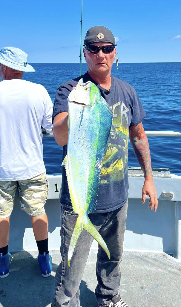 Sailing out of West Ocean City, Captain Monty Hawkins of Morning Star Fishing reported that the mahi fishing on Monday the 9th was very slow. After 8 spots they switched to targeting sea bass to bend some rods and get some fish on ice. The sea bass bit well along with some red hake (ling), and by mid-day, they were back to pot-hopping for mahi. They found mahi on four pots, then the next seven were completely bare. On Tuesday they returned to the area and found no mahi at all, except one mini chicken mahi that spit the hook near the boat. Instead, they headed to the sea bass grounds again, which turned out to be the right move. According to the captain, “They bit fantastically. Jig, bait – didn’t matter. A couple fellows up front even caught some squid. Very glad to see that. Excellent sign of healthy reef I think.” The skipper said that he has not yet given up on mahi and will be on the grounds today, as well as Friday (if they go out)—they have almost nobody booked for the 13th! Give them a shout to reserve your spot on a light rail and get in on some mahi and/or sea bass action.