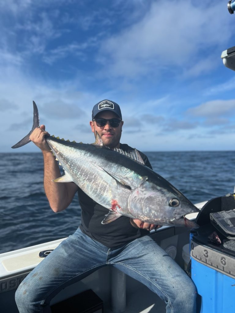 Captain Connor at Tall Tailz Charters provided the following report: “The weather has cooperated for the most part this week, and we’ve been able to get offshore for most of our trips. The nearshore bluefin bite has still been good but is just starting to show signs of slowing. The jig bite is producing best, along with the early morning troll bite. There are also good groups of larger oversize bluefin as well as some yellowfin mixed in. Whenever we have fished inshore, the bite has been stellar, and we will start focusing more on that as the offshore bite slows. Big bass and blues are on the move, along with tons of bait flushing out of the bay. This has equated so some epic topwater blitzes of bass and blues, along with some big fish of each species feasting on bait on the inshore reefs. The loads of small bait have also resulted in a solid push of bonito, chub mackerel and some albies. False albacore are prevalent just offshore, and we’re starting to see them inshore, so it should blow up any day now. It’s hardtail season inshore and offshore!