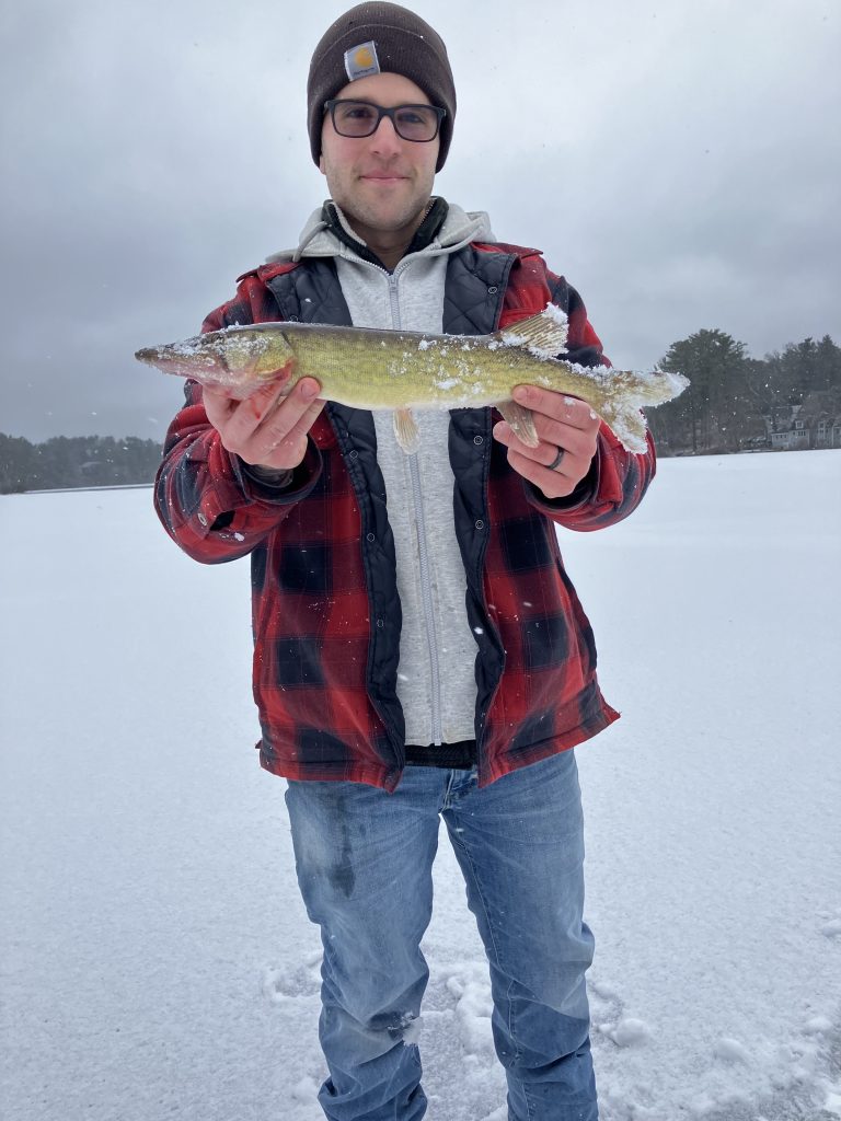 Evan at Eastman’s Sport and Tackle in Falmouth said the shop will be closed for a few weeks, but there is some safe ice around town and people are finding some success with bass and pickerel.