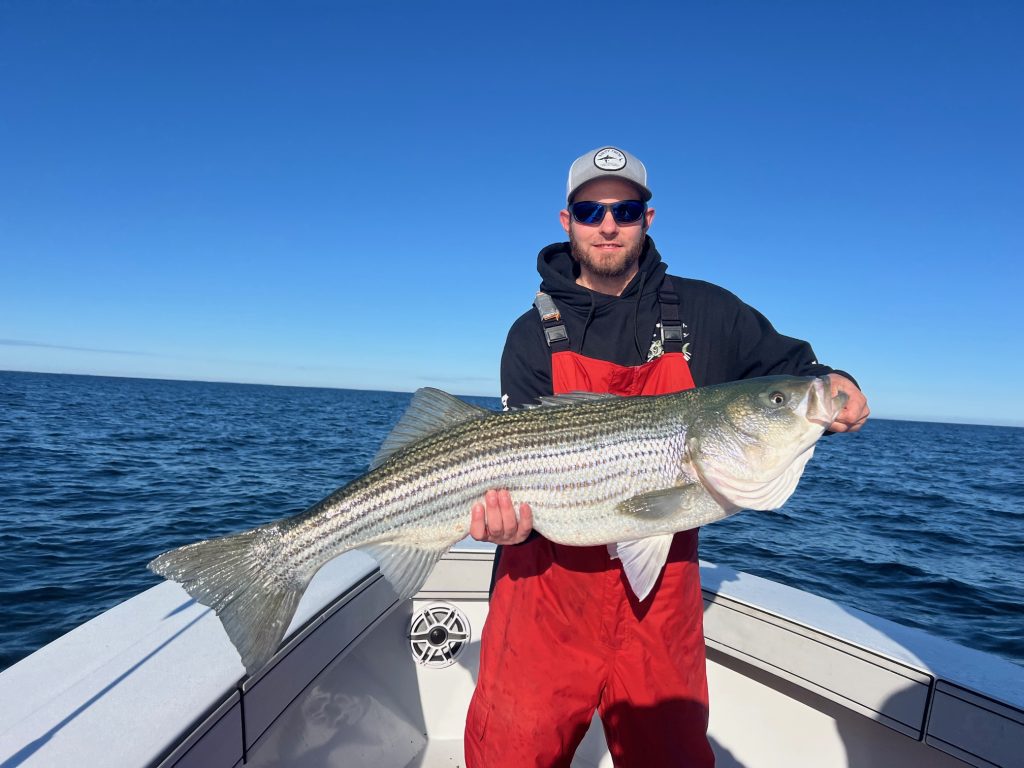 From the isle of Nantucket, Rick Ramos reported: “Striped bass fishing around Nantucket has been gradually improving, with more fish showing up each day. While overall action remains on the slower side, a few anglers are finding success along the structured, open beaches of the south shore. The West End has yet to produce strong numbers, but the harbor is holding fish, thanks to an abundance of bait flushing through the area. The annual Spring Sea Run Opener is officially underway, and the highlight of the week came from angler Victor Boucher, who landed a massive 46-inch striped bass—putting him in a commanding lead for the top fish in this year’s competition. Tournament founder Raf Osona shared his thoughts on this remarkable catch: ‘This is a tournament record. In fact, this may be the largest striped bass landed from the beaches of Nantucket during a tournament in over two decades.’ Congratulations to Victor, who has built a strong reputation for consistently targeting big fish. Once again, he’s setting a high bar for Nantucket surfcasters!”