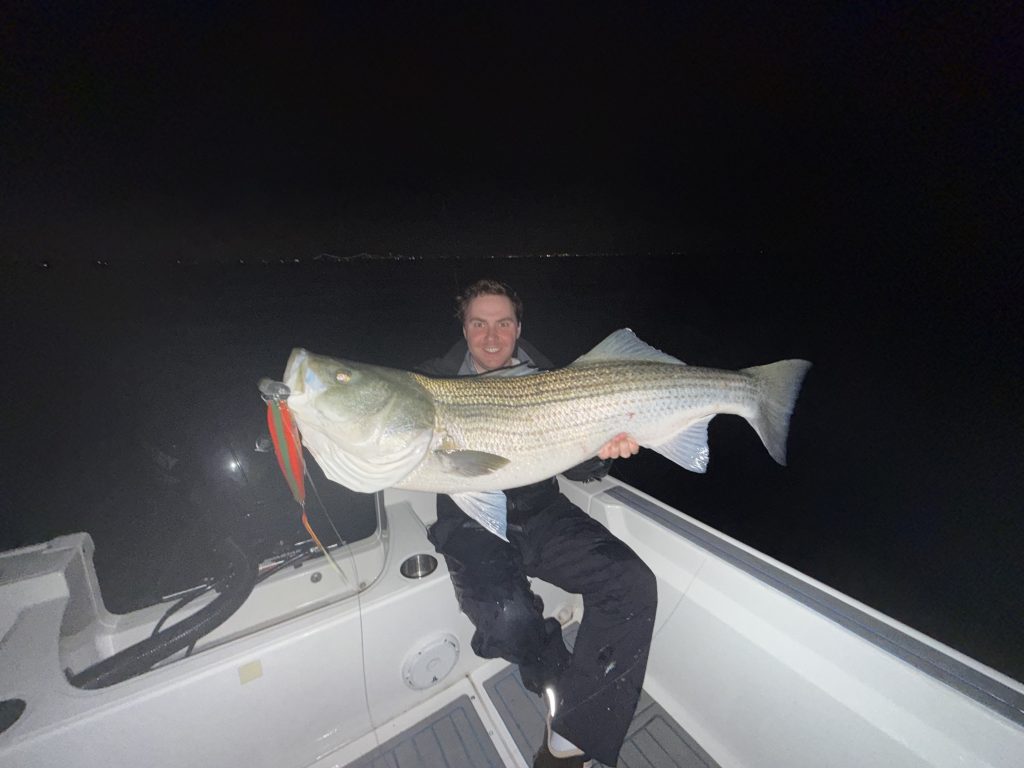 Will King (@willie_fish) on the South Shore reports: “This past week has brought in some good-sized bass filtering in among a plethora of 30- to 38-inch class fish. Large metal lips and, as always, bucktails, are doing most of the damage. Metal lips are producing fish to the upper 30-pound range.”