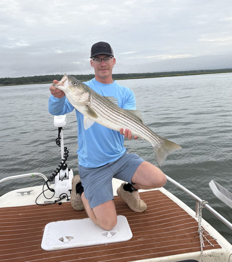 Captain Drew Downing of Down East Charters in Chatham reported: “A week of east wind started sluggish, but the fish adjusted and bait started to come through with more regularity in the last few days. Still a variety down there, but more sand eels and terns in the mix now. Fun fishing to be had on both tides and most edges. Seeing a couple bluefish and oddball bones (bonito) at the point now as well.”