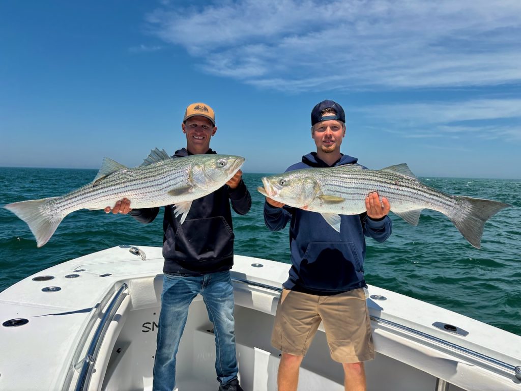 Captain Drew Downing of Down East Charters in Chatham reported: “No more bonito sightings, but starting to see bluefish in the mix now from time to time. Bass fishing continues to be productive in moving water at Monomoy. The high sun and hot temps definitely made the midday tides a bit slower these last few days, but early and late in the day was good. A mix of bait continues and we’re now seeing bird piles over sand eels up the east side of the island that have fish on them. Summer is upon us.”