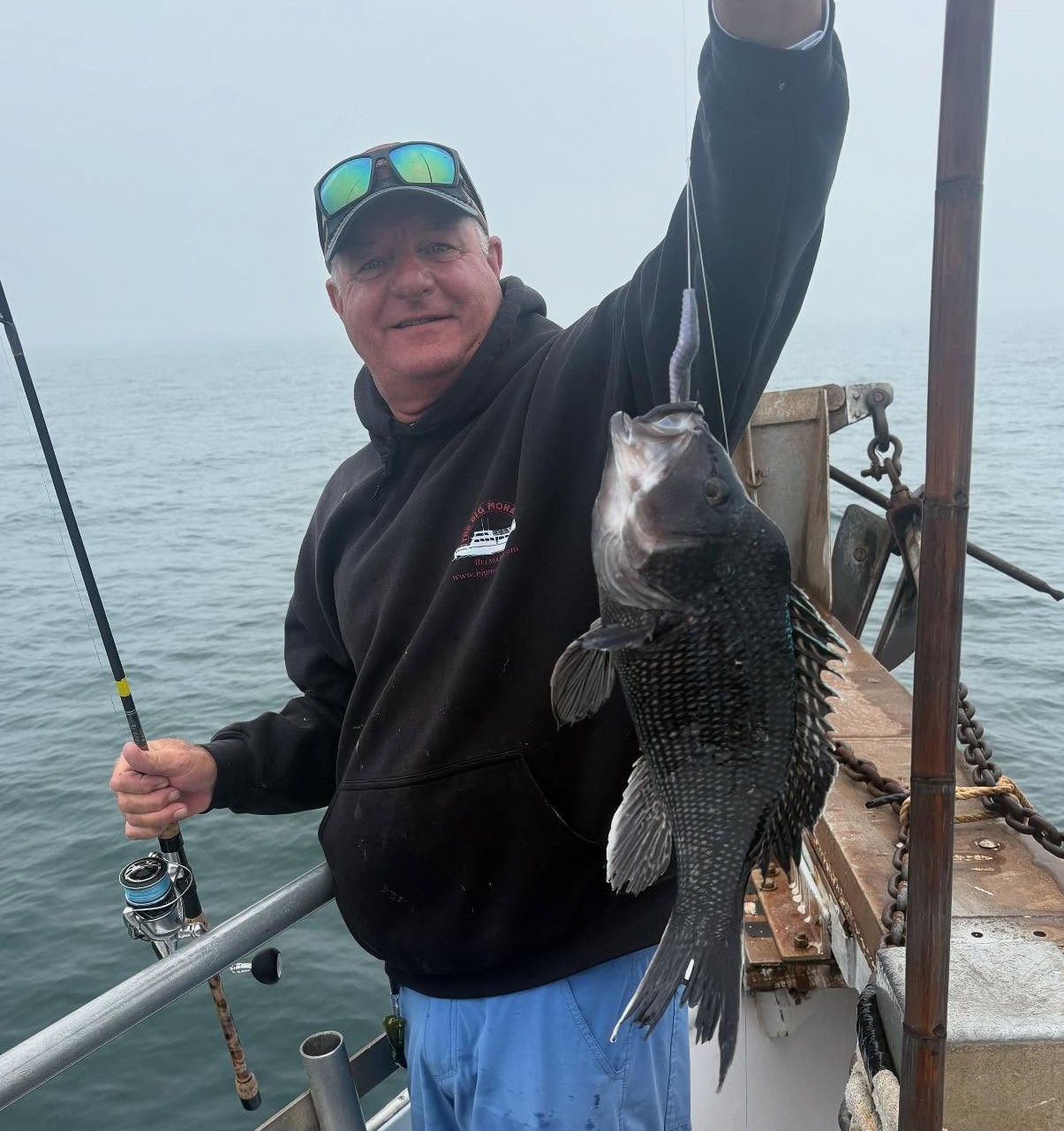 Capt. Rich Falcone on the Golden Eagle out of Belmar also reported lights out sea bass fishing on Wednesday and will begin bluefishing on Friday.