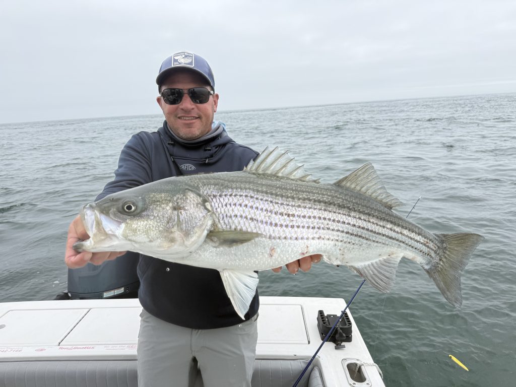 Captain Matthew Dempsey of Salt Reaper Charters in Dennis reported: “”Cape Cod Bay has been holding some good fish on pogies, but you have to keep moving from pile to pile to find which one is holding fish. Docs, flutter spoons, and X-Raps have been working the best.”
