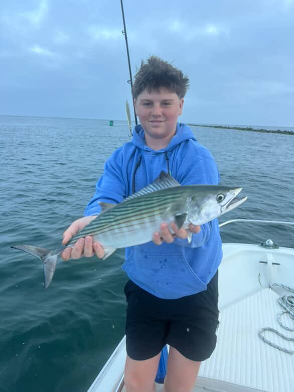 From Nantucket, Rick Ramos shared the following report: “Schools of bonito made another appearance this week as they flushed into Nantucket Harbor creating a buzz across the island. Bluefishing remains relatively slow, but with Great Point and Smith Point now fully open for OSV driving, anglers have fresh opportunities to target blues in two of the island’s hottest spots. August Blues Tournament competition is heating up. In the Beach Division, David Tribble holds a razor-thin ½-inch lead over defending 2024 champ Tedy Bruschi in the Triple Strike competition. In the Boat Division, Dusty Ramos has overtaken 2024 champion Heather Unruh for the top spot. Junior Division angler Rivers Sullivan currently holds a commanding lead. There’s still plenty of time to get in on the action as the tournament runs through August 31. See all current leaders and register at August Blues.