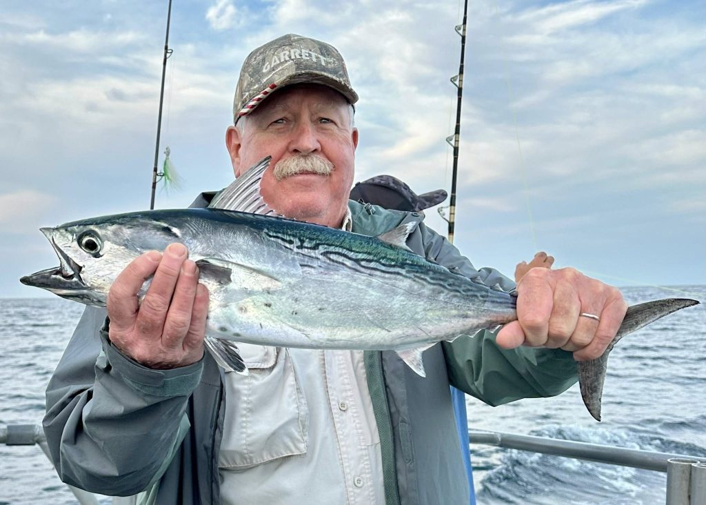 From West Ocean City, Captain Monty Hawkins of Morning Star Fishing hadn’t sailed since the weekend, but left the fish biting before the blow kept them at the dock for several days. Their last trip on Sunday was a “busman’s holiday”, and the skipper set sail early in hopes of finding wahoo, mahi, and sea bass. He had high hopes for mahi after spotting loads of peanut bunker inshore the day prior, and although they didn’t manage any green, they ran into some large false albacore and boxed some quality sea bass on jigs and rigs tipped with Gulp and strip baits. They’ll be sailing again once conditions have settled, so sign up for their email list at morningstarfishing.com and stay in the know by checking out their Facebook page. Give them a shout at (443) 235-5577 between 8 AM and 8 PM to inquire about dates and rates and to reserve your spot on the rail.
