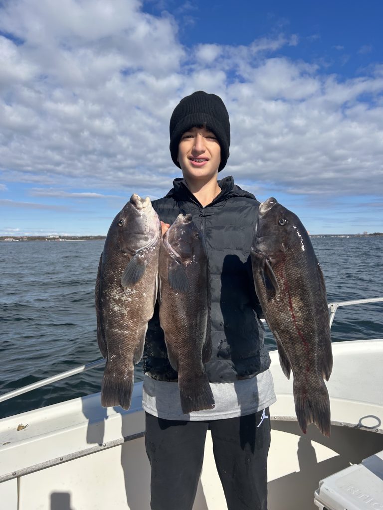 Andrew Bernat (@tactical_bassin26) reports: “Blackfish are moving out into deeper water, and there are tons of schoolie bass in the back bays blitzing on top. There are also a few monster blues in the mix eating pencil poppers. As for the south shore, the nighttime bite has been solid, and while I haven’t landed a monster surf fish, I’m finding plenty of schoolies.”