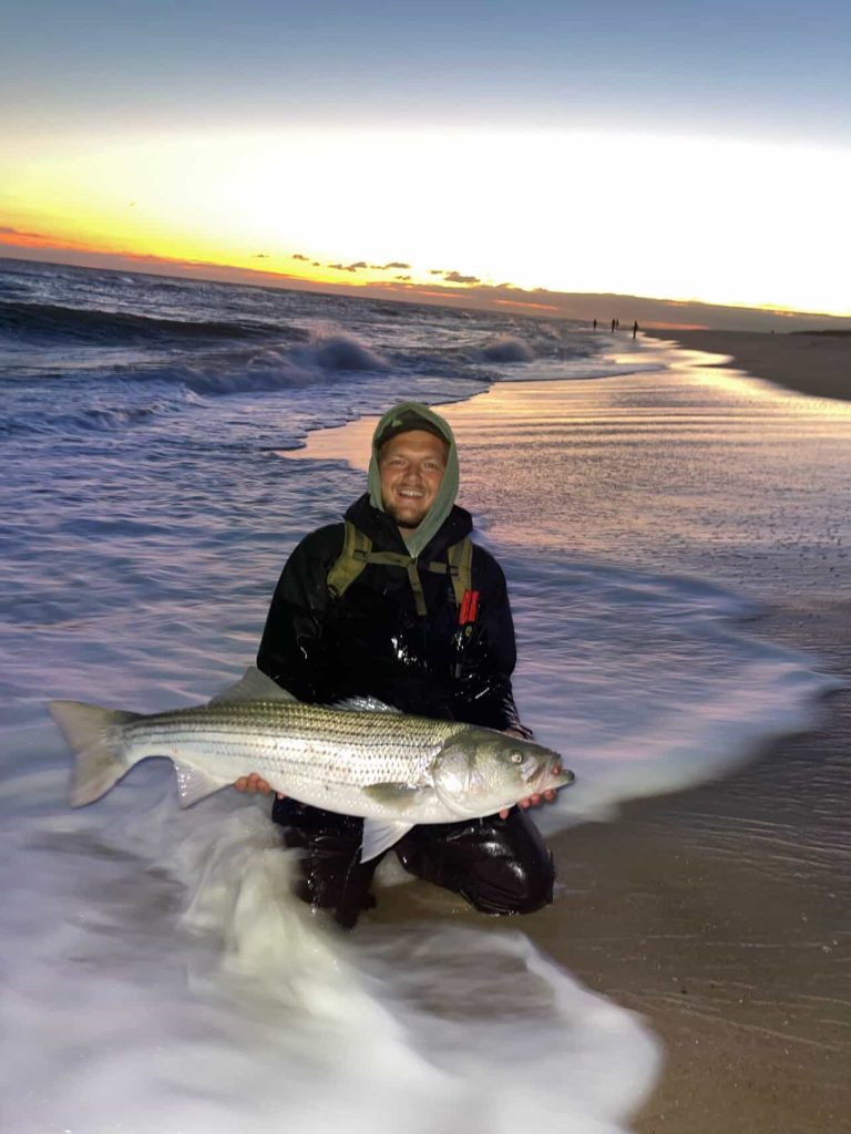 Nick Cherkas (@surfcasting_the_island) reports: “As expected for my area, the number of quality fish dropped off as the October new moon peaked. This past week, many fish in the schoolie to slot-size range have infested our south shore beaches, with the occasional 20-pound-plus fish in the mix. As far as the day shift goes, action has become more steady in terms of numbers and predictability. Many fish have been taken on a variety of bucktails, tins, swimming plugs and plastics. Being limited to the night shift, things have softened up on my end as bigger fish have become sparse. Darters have produced for me, culling out the smaller fish and picking up bass in the 12- to 15-pound class at most. Leading up to the November full moon, I expect to find more blitzing fish during the day and large waves of fish to pass us by with more consistency.”