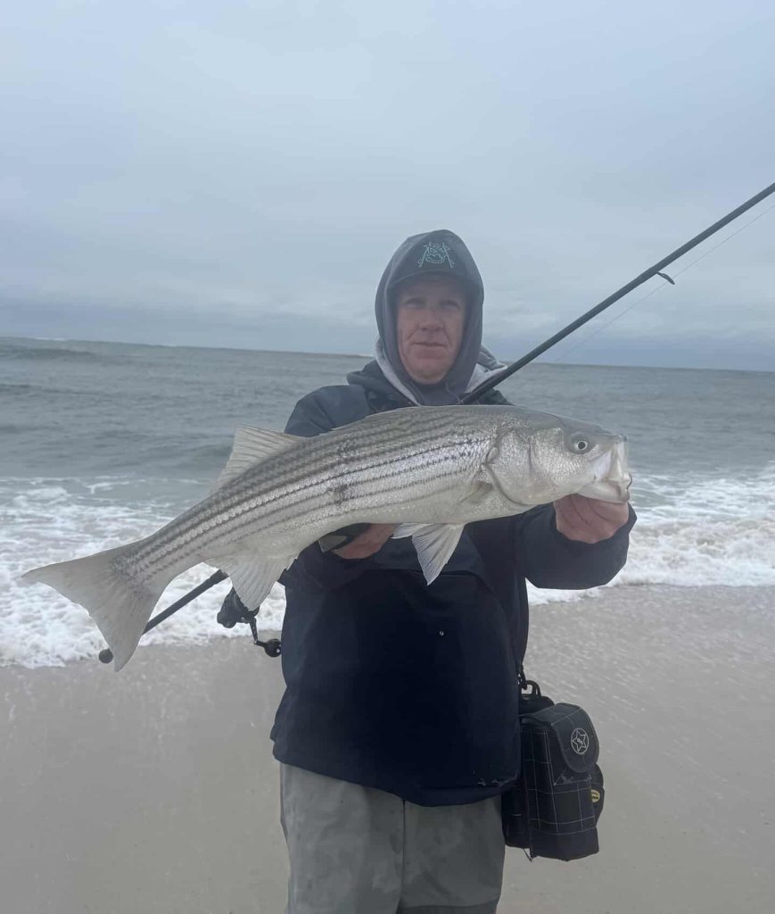 Bill Falco (@fishlongisland) at Chasing Tails Bait & Tackle in Oakdale reports: “Striped bass are the talk of the town this week! Boat and surf guys are crushing it with big catches and some great numbers. In the surf, the night bite holds tried and true, with most of the best catches happening when the night shift crew are out lurking. Bucktails, needlefish, bottle plugs, and darters have been pulling the big ones. Justin Marcisak fished Thursday evening and landed his PB, an absolute beast, while fishing a bucktail tipped with a Fat Cow strip he grabbed here at the shop. His first time ever grabbing a bass on a bucktail, and he smashes his personal best by strides! The fellas on the boats are smashing big pods of fish in the ocean. SP Minnows, bucktails, swim shads, and jigs are the must-haves for every trip. Find what bait they’re on and keep following them. Tog reports are still rather good locally and even better out on the wrecks. Rigs, jigs, and crabs are the essentials, and be sure to bring extras! You’ll want a rod with a light enough tip to feel the crunch, but enough backbone to yank them out of their rocky fortresses. Be strategic with your setups, and you will win. There are some mondo white chins coming up over the rails this season.”