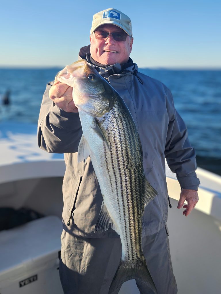 Captain Jamie Clough of Eastern Shore Light Tackle Charters said that despite the wind, striped bass fishing has been very good for the past few days. After the recent drop in temperatures, the skipper said the fish have moved to deeper water and they are hanging out on ledges. Their charters are catching the bulk of their fish on 1-ounce skirted jigs paired with 6-inch paddletails, and there have been some decent bass in the mix. Head over to Capt. Jamie’s Facebook page for contact info and rates if you want to get in on the action.