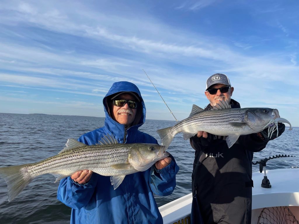 Captain Jamie Clough of Eastern Shore Light Tackle Charters said that stripers are headed out of the rivers and they are hot on the tails of schooling baitfish. The skipper has not been out in 3 days due to high winds, but the striped bass bite leading up to this temporary break was nothing short of outstanding. He called it some of the best fishing of the season. Big soft plastics with skirts, fished with a more rapid retrieve, have been the ticket to success for his recent charters. Head to Capt. Jamie’s Facebook page for trip rates and contact info. to book a trip while the fishing is hot!