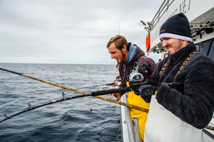 Have a jig rod ready – Periodically, the tuna will pass under the boat, allowing the captain to see their exact depth on the fishfinder. Most captains quickly relay the depths over the loudspeaker, and a fisherman with a jig rod at the ready can quickly drop a lure to the fish.