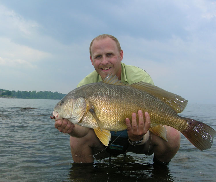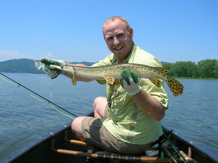 There are others who read of Dave and Emily Whitlock’s experiences catching carp on the flats and who share the same penchant for “unusual” fish that I admit. Drew Price is one of those open-minded individuals. He grew up near Malone, New York and fished mostly for trout, but he was always fascinated by unusual critters like bowfin, which he caught on Lake Champlain with conventional tackle. In 1993, he got his first fly rod and made the natural progression, using Wooly Buggers and stout leaders. He was hooked far more than the fish and began a hard look at all sorts of other species that were available to fly fishermen. He even began guiding others to introduce them to the thrills of catching the unconventional.