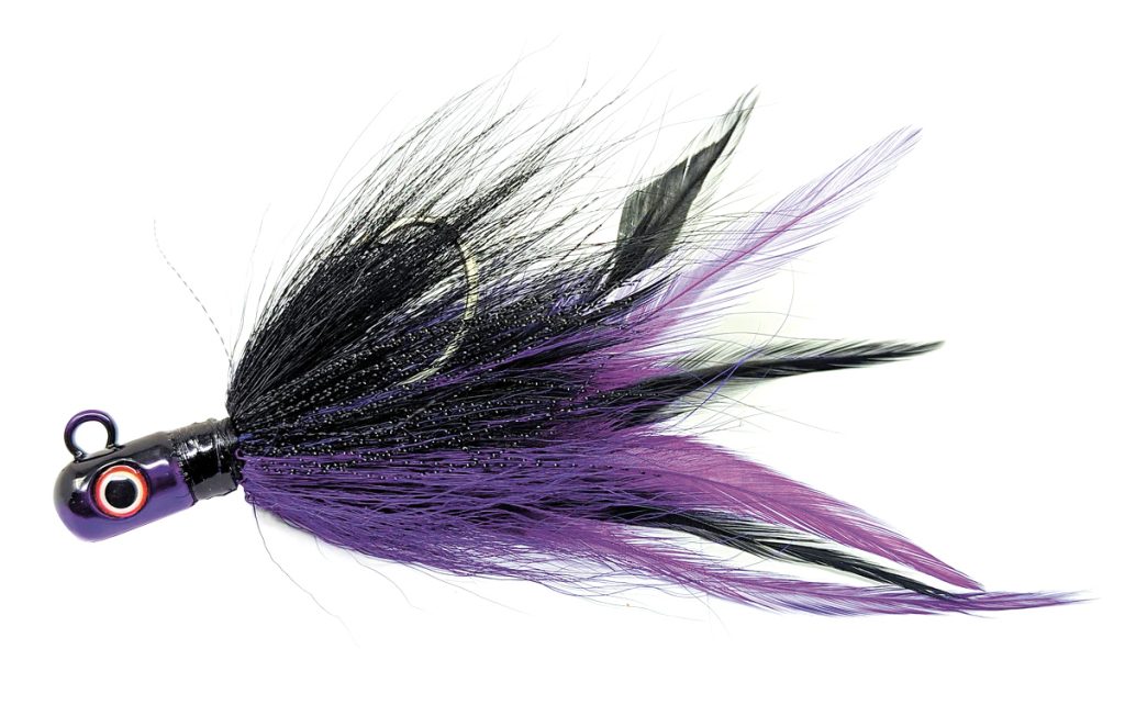 Tying several hackle feathers to the hook shank of a bucktail creates a permanent trailer. It has the fluid movements of a natural material, but it won’t dry out like pork rind.
