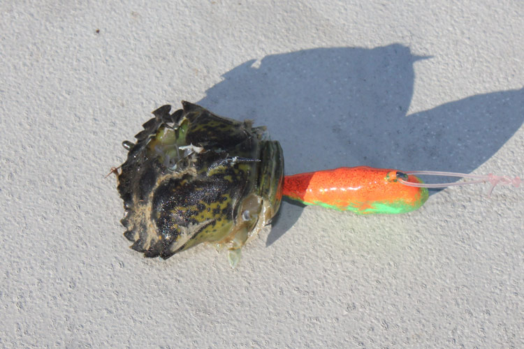 Tog will crunch up all manner of crabs including rock crabs, green crabs, hermit crabs and Asian crabs. When the crabs are the size of a silver dollar or smaller, I use them whole, while larger ones get halved or quartered. For ease of hook entry into the crab, break a leg off the crab and push the point into the opening so that it protrudes out of the shell, side or belly of the crab. If you are using a whole crab, make sure you crack the top of the shell with a sinker or other hard object to unleash the come-hither juices to nearby tautog. Hold that crab in the palm of your hand as you crack it and do not crunch the crab against the boat. A noisy boat is not music to a tog’s ears!