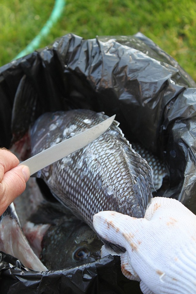 We only kept the largest fish, releasing most of the females (male sea bass have humps on their electric-blue heads like the one in the photo above, females have less color). I ended up keeping 7 nice fish, which means I’ll be eating sea bass every night this week, which is just fine with me.