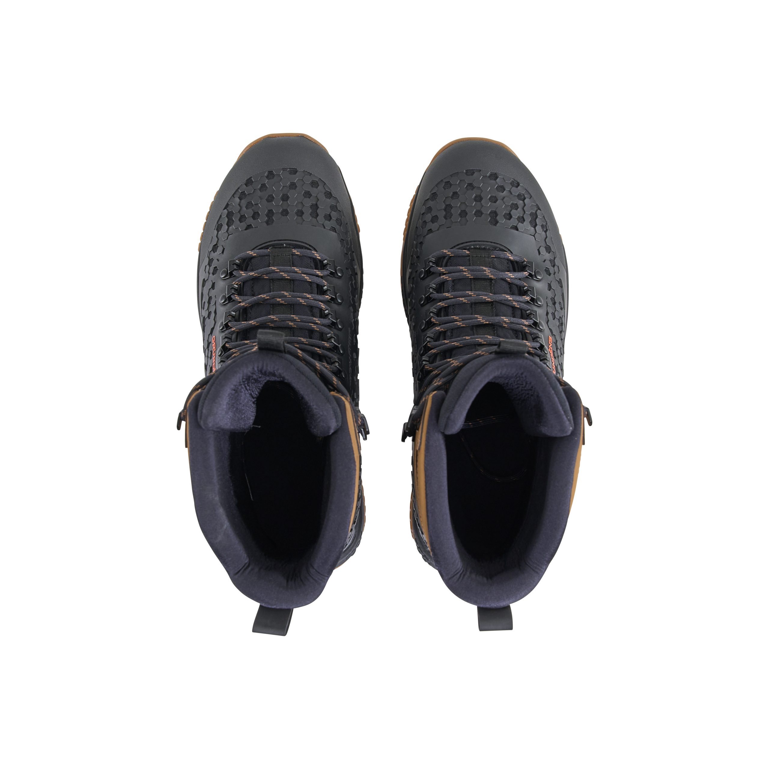 The perforated hex pattern sheds water, increases flex for dynamic movement, and leverages one of the strongest geometric structures to resist tearing under repeated stress. Corrosion-resistant hook-and-lace hardware ensures a secure fit, while high-grip gum rubber outsole and rubber sidewall wrap in high-wear zones providing unshakable traction and long-term durability. MSRP $329.99