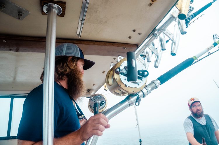 The balloons dance at the limit of our visibility as the dense fog refuses to lift. Despite the hazy conditions, Rob sports a pair of Costa Del Mar polarized sunglasses fitted with the Sunrise Silver Mirror lens, designed specifically for days like this. While a bite could come at anytime, the odds are best around slack tide. Our first slack will be around lunchtime, and if we don’t catch a tuna by then, we’ll fish through the second one at dinnertime.