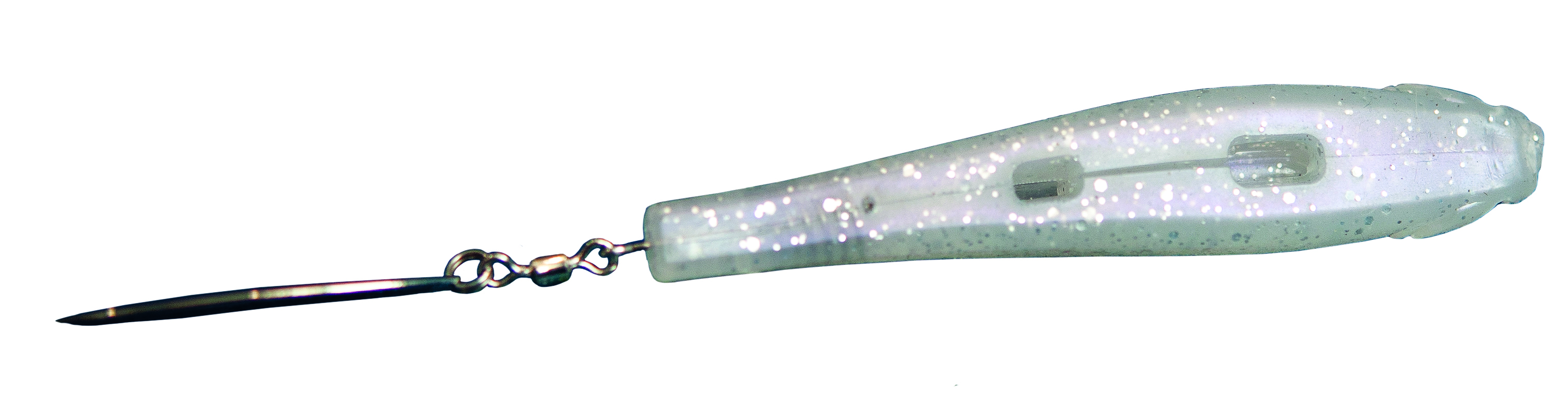 Molded-in slots mean easier rigging, and by not puncturing the bait with the hook, the DartSpin is less likely to tear, further extending its life. The placement of the slots allows for a wide range of rigging styles. ABOA fishermen have successfully used jigheads from 1/8 to 5 ounces when rigging DartSpins for various species.