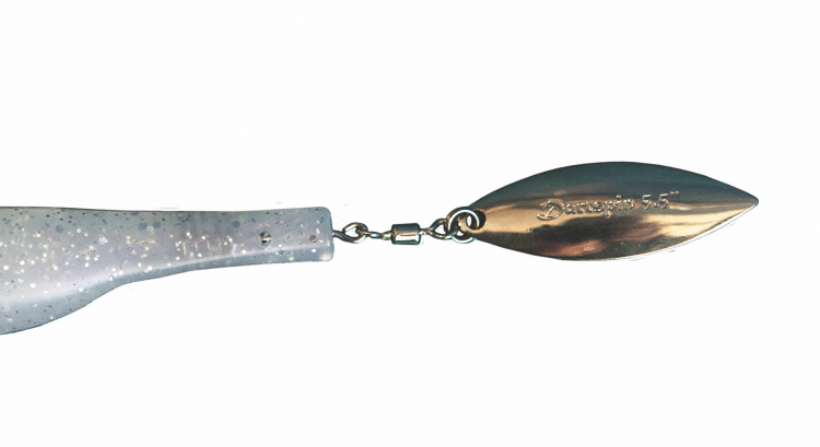 The willowleaf blade tail of the DartSpin adds flash and vibration, making it unique among soft plastics. The blade starts spinning on a slow retrieve, and spins even on the fall when the bait is rigged on a jighead.