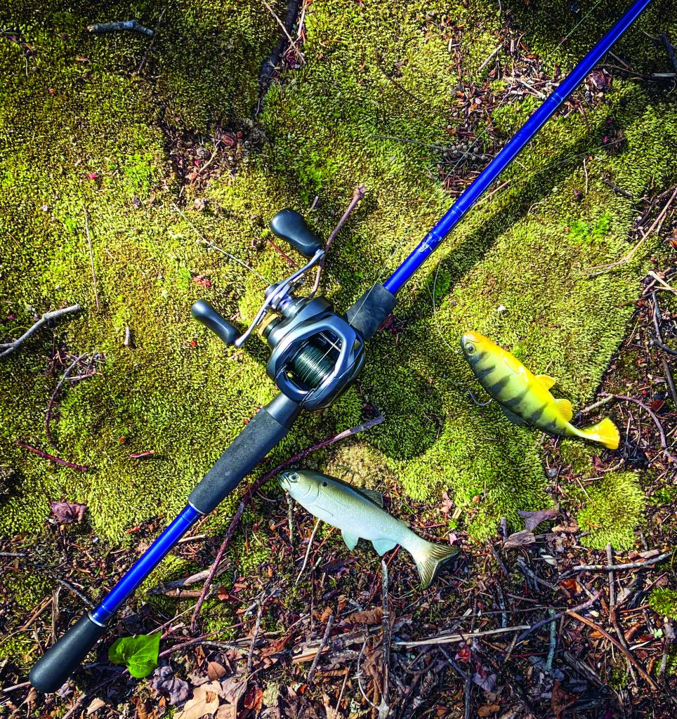 For gear, I prefer two setups, one heavy and one light, as well as a bag that allows me to carry two rods at once. My heavy setup is a 7’2” Douglas casting rod with a Shimano Curado spooled with 40-pound-test braid. It’s perfect for throwing heavy swimbaits and large topwaters in the summer months while still being gentle enough to make smaller fish fun. My light setup is a 6’6” St. Croix Triumph with a Daiwa BG spooled with 15-pound-test braid. I love to throw weightless swimbaits on this combo when fish are being picky, or perhaps a Ned rig.