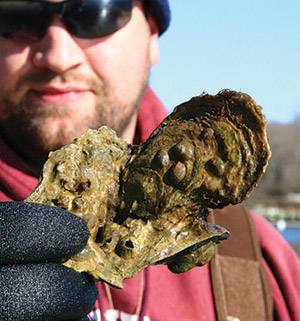 Wild oysters are not as abundant as they once were, but if you look hard enough you can find them. Some towns will seed oysters, and these areas can be especially productive. Oysters tend to favor rocky areas, generally in bays and harbors that get plenty of tidal flow. They begin their lives as “seeds” that drift through the water seeking out something to anchor on. Once a seed finds a suitable location, usually a rock or another mollusk shell, it starts building a foundation for its new homestead. Unlike other types of bivalves, oysters cannot move. An oyster creates a secretion that bonds its shell to a hard surface, and once it’s there, it’s there for a lifetime. This feature makes them pretty easy to locate. Unlike steamers and quahogs, oysters lack the ability to dig and can be found sitting right on top of the seafloor.