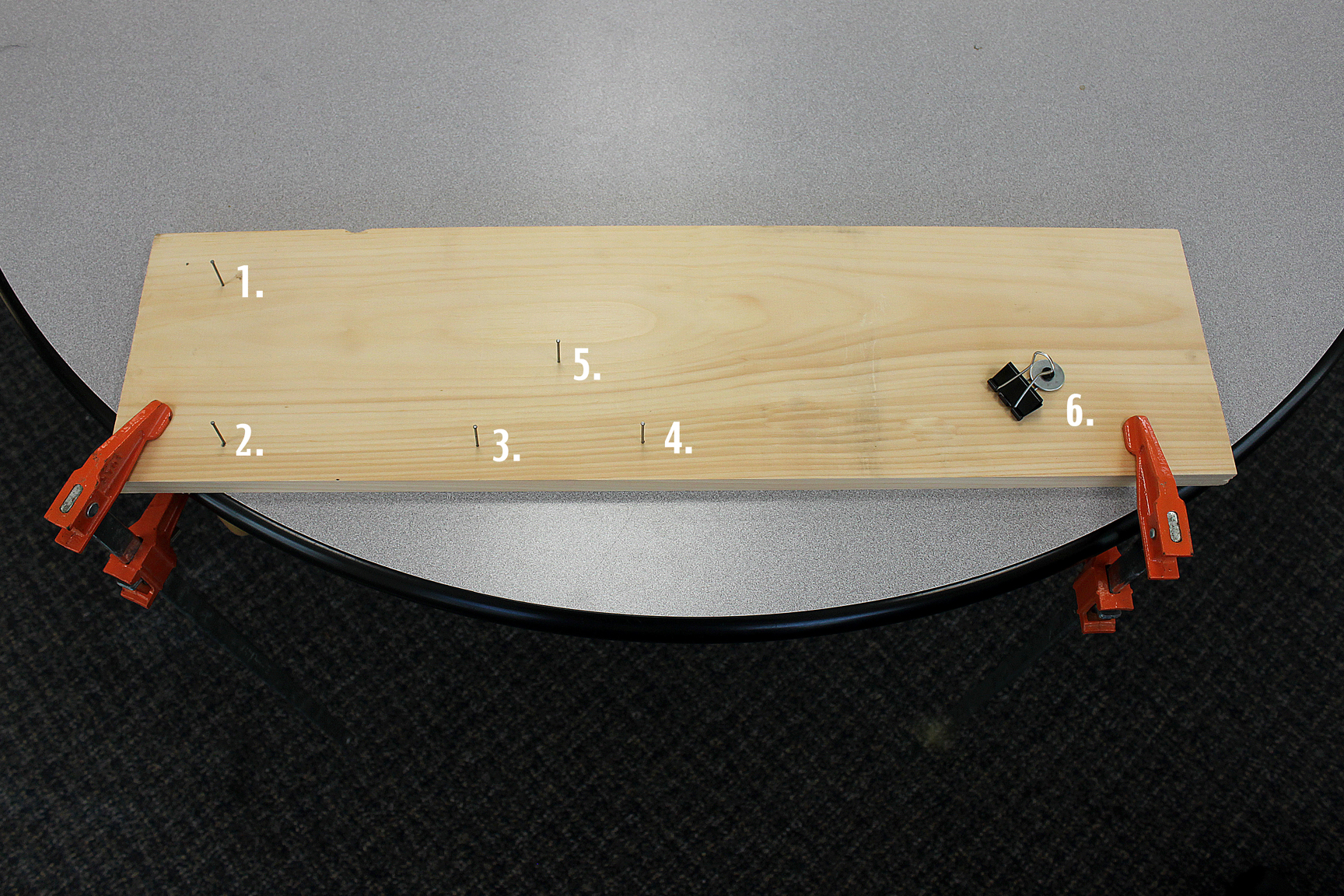 What is the spacing of the nails on the 2by6 board thanks