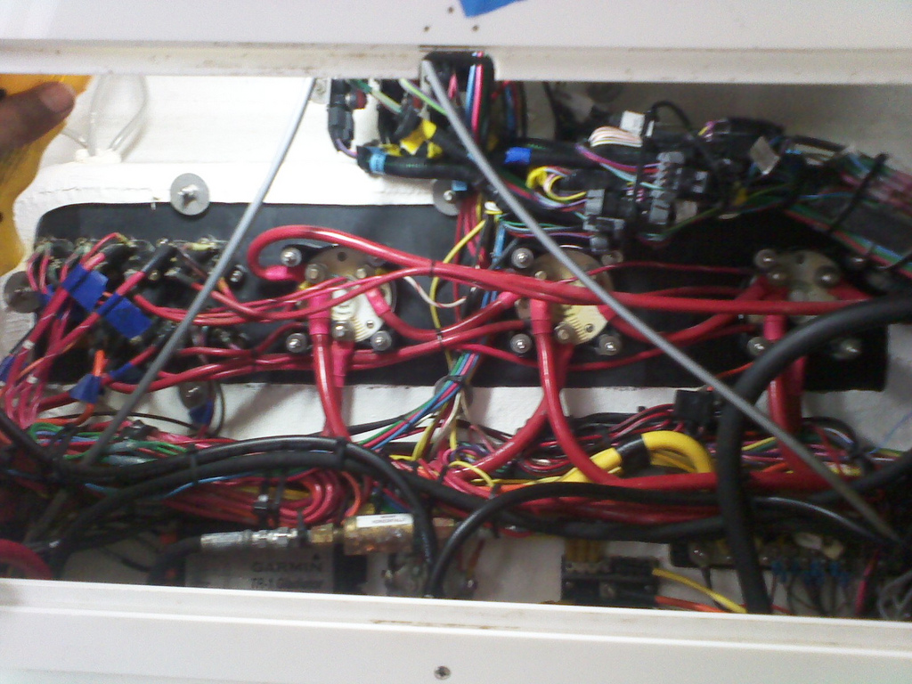 I truly believe that electrical departments in building supply stores depend on sales to the boating public. Many times we’ll be troubleshooting a voltage problem when we come across lamp cord wire, electrical tape connections, those pesky house wiring “wirenuts,” and other products that do not work at all in a marine environment and are dangerous to use on a boat. Wiring has to be of proper size, proper terminals and secured at least every 18 inches. We have all been on a boat when it hits hard coming off a wave. Imagine the force transferred to loose hanging wires. We have seen this condition pull the wires off dash switches. Remember that extra 30 feet of transducer harness just hanging behind the dash panel? Marine wire and terminals are more expensive but they have a solder coating on all the strands to resist corrosion of the copper. Don’t forget that all electrical circuits have to be protected with a fuse or circuit breaker of proper size. You will now see that wire colors have changed in our twin conductor or “Duplex” wire. What was red for positive and black for negative has changed to red for positive and yellow for negative. A child was electrocuted as it was found that someone had connected all black wires together. This untrained person connected the “Hot” or “Live” wire from his 110 volt shorepower, which is black, to the negative ground on the 12 volt system. If you do not know or understand electrical systems, have a Marine Technician perform the job. For the same reason it would be unwise for me to wire up a building, don’t hire an “electrician” who is not trained in marine electrical systems.