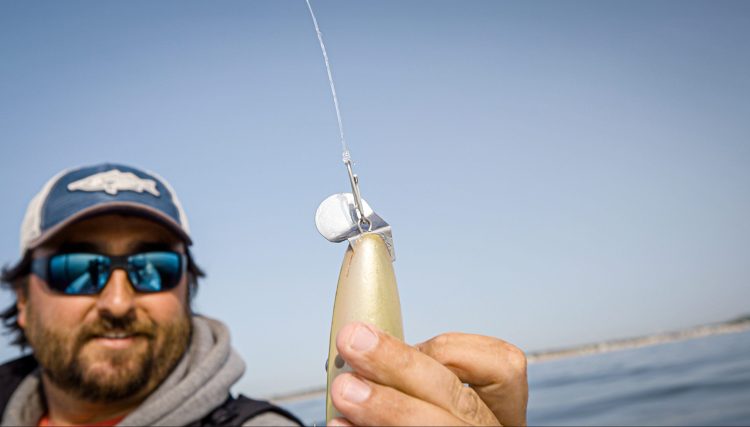 The plugs we’re throwing share DNA with the striper classics of old, but feature improved designs, hardware, and color patterns. Radlof is casting a Big Water Pikes troller, made by Gary Soldati, in a black-over-white color pattern, while Matthews and I cast Time and Tide Lure Company trollers made by Kevin Brennan.