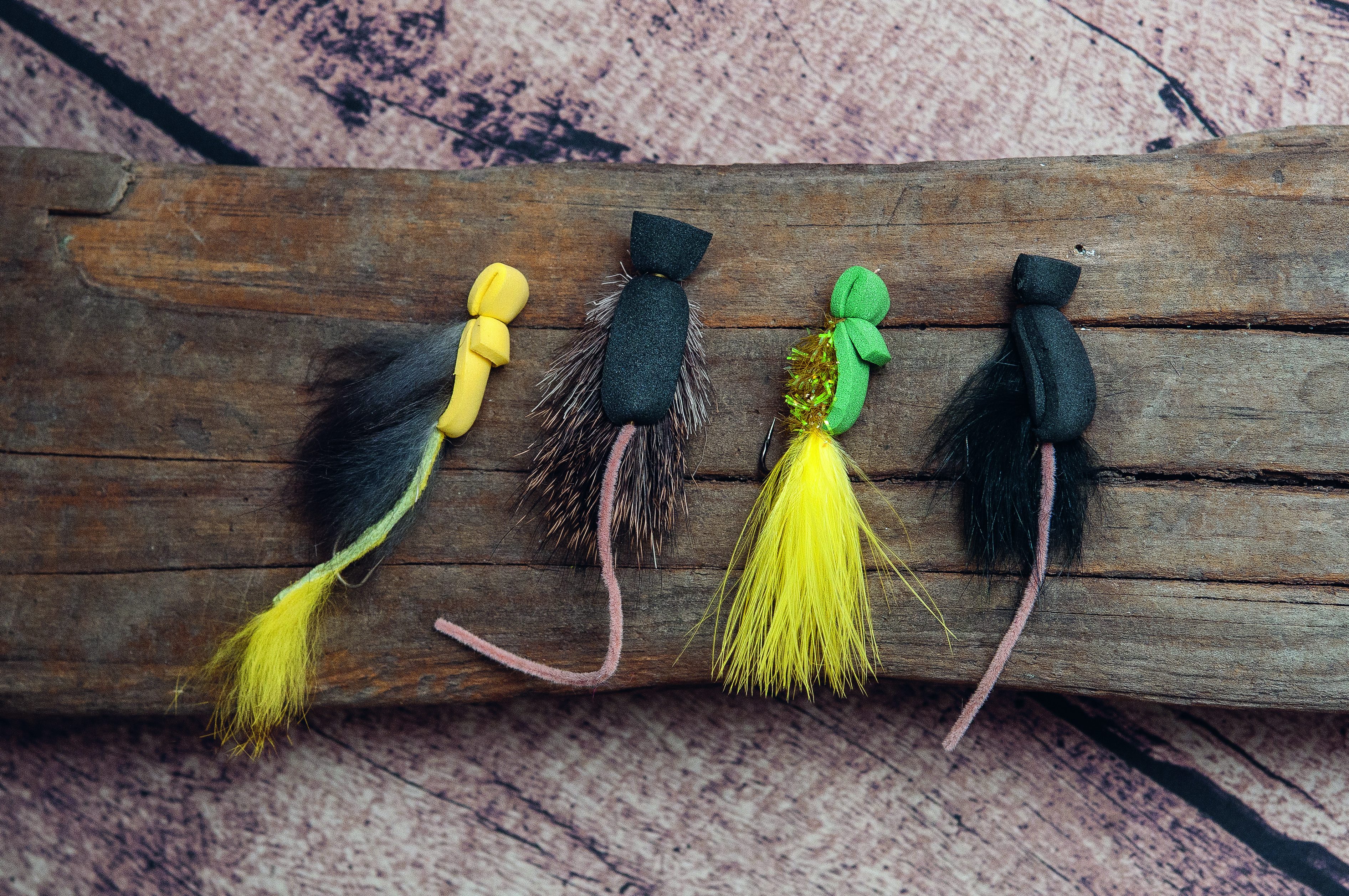 Topwater fly selection for daytime trout differs some from the selection used at night, but not by much. You can eliminate the largest patterns for daytime fishing. You might get takes on a 5-inch mouse pattern with a stinger hook, but sticking to patterns like the Morrish Mouse and the Master Splinter will result in more action. These flies, tied on size 2 or size 4 hooks, are perfect for daylight mousing.