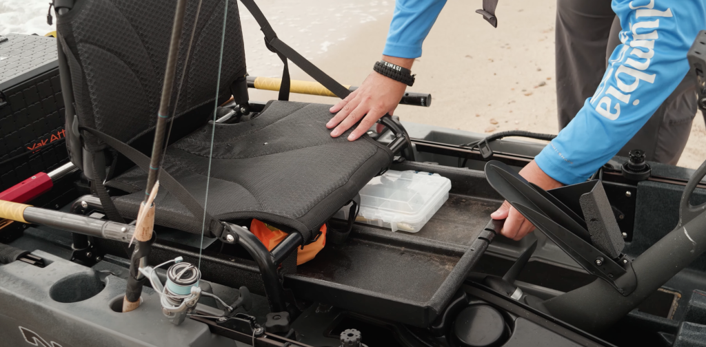 For starters, the Slayer Propel Max 12.5 has dual horizontal rod storage as well as three molded in rod holders, so I always keep a minimum of 2 pre-rigged rods with different offerings in the rear molded holders. The third rod holder is molded directly next to the seat which makes it easy to land and unhook sizable fish like stripers, bluefish, and even the occasional XL false albacore. Plus, if you don’t have a pliers holster on your person, the under seat tackle storage drawer provides ample space for a tackle tray or two, as well as any essential handheld tools that need to remain in reach.