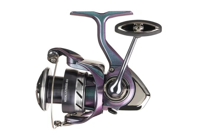 The Regal LT is highlighted by Daiwa’s AirDrive technology and Zaion V composite construction for extra durability in a lightweight package. A screw-less rotor and AirDrive bail system decrease the reel’s weight by 15% which, along with the machined aluminum handle, leads to a smoother retrieve while improving control and accuracy.