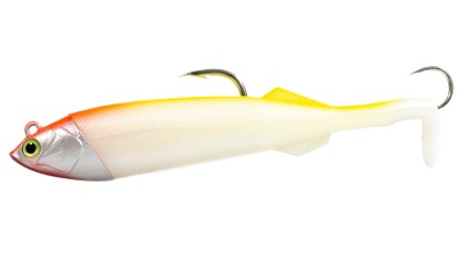 Having already proven its worth as a tarpon lure, this soft-plastic matches the profile and swimming action of a peanut bunker perfectly. Matched with a jighead, this one has big potential for fall stripers.