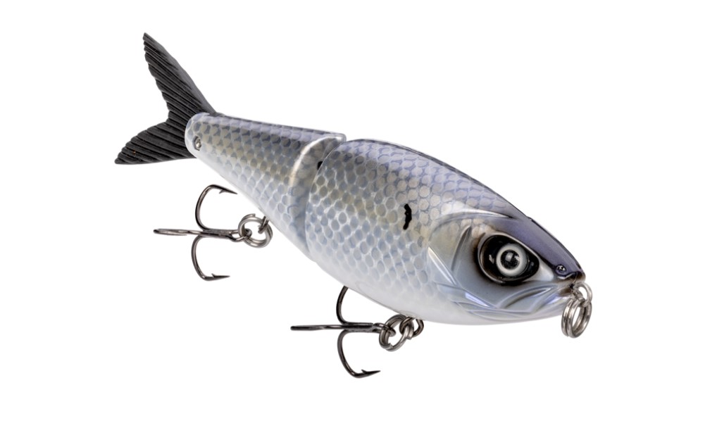 Built in partnership with Tater Hog Custom Lures, this versatile 7-inch glidebait swims across a range of retrieve speeds, from slow and deliberate to medium fast, maintaining its proven glide action throughout. It is equipped with swivel-hook hangers designed to keep fish securely hooked and features a range of unique color patterns. Though designed for largemouth bass, with upgraded hooks, it has striped bass potential as well.