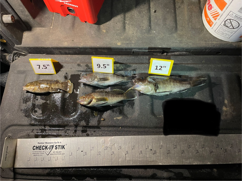 Undersized fish discovered at Flax Pond Tidal Wetland Area in Suffolk County. (Photo courtesy of NYSDEC)