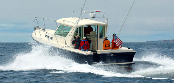 Fortier Boats has been building semi-custom boats for over three decades, constructing over 500 boats in four different sizes from the iconic 26-foot “bass boat” to their 40-footer. A wellproven Eldridge-McInnis design makes their product an exceptional sea boat, and today’s Fortiers have been updated to incorporate the modern conveniences expected by today’s buyer, including the expected fuel economy of diesel inboard engines. An exciting development is the incorporation of the revolutionary quiet and efficient Volvo IPS pod marine propulsion system in certain models.