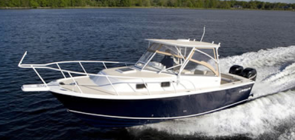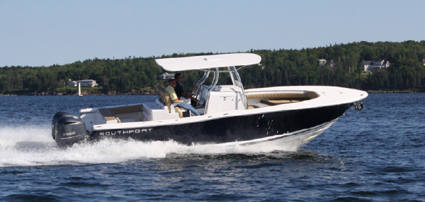 Southport was started from scratch in 2003 by a team of seasoned boat builders whose goal was to build a boat that would maximize the performance and power of modern outboard engines. The design uses the heavy weight of four strokes as an advantage in order to allow more beam and deeper Vs than comparable competitive models. This combination results in a dry, stable platform with sharp entry and ultra-smooth ride. From their Augusta, Maine factory, Southport produces a 27CC, a 29CC and a new 29FE Family Edition, which delivers the luxury of a family cruiser without sacrificing fishability. It includes an adjustable table for dining aboard that lowers to create a sun pad, and an aft lounge that provides multi-person seating but folds down for fishing.