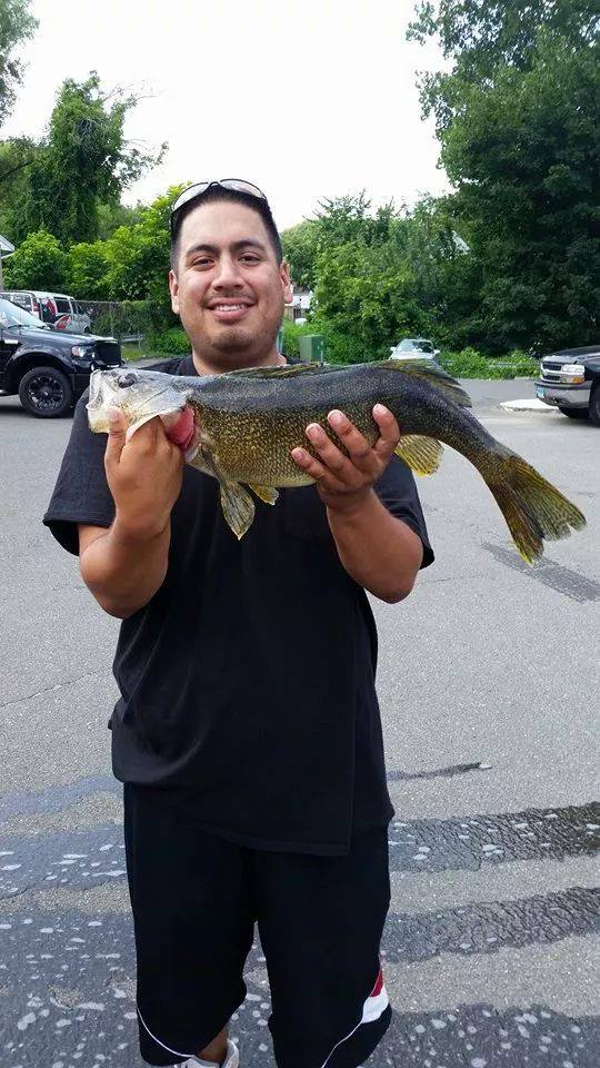 Bass – Bass fishing is still going strong and anglers are hooking up with some real hogs. Great largemouth reports have come from Saltonstall, Bashan, Bantam, Candlewood and Ball pond. The smallmouth action is just as hot on Shenipsit, Candlewood, Squantz and Colebrook. Anglers are slamming fish with topwater from dusk til dawn. Jitter bugs, spooks and poppers of all kinds have been getting explosive reactions from bass. Panfish action is hot all over the state. Pike fishing has been decent with some reports from the upper Housatonic, Bantam and the CT river. The summer time walleye bite has been good. Solid reports have come from Squantz while fishing alewives at night. Some ok reports have also come from the Saugatuck Reservoir. Pictured is Adrian Pinos with a nice Candlewood lake walleye that was just under 6lbs. In recent weeks there have been reports of an 8lb and a 7lb walleye that were pulled from Candlewood. The bite is only going to get better leading into the fall.