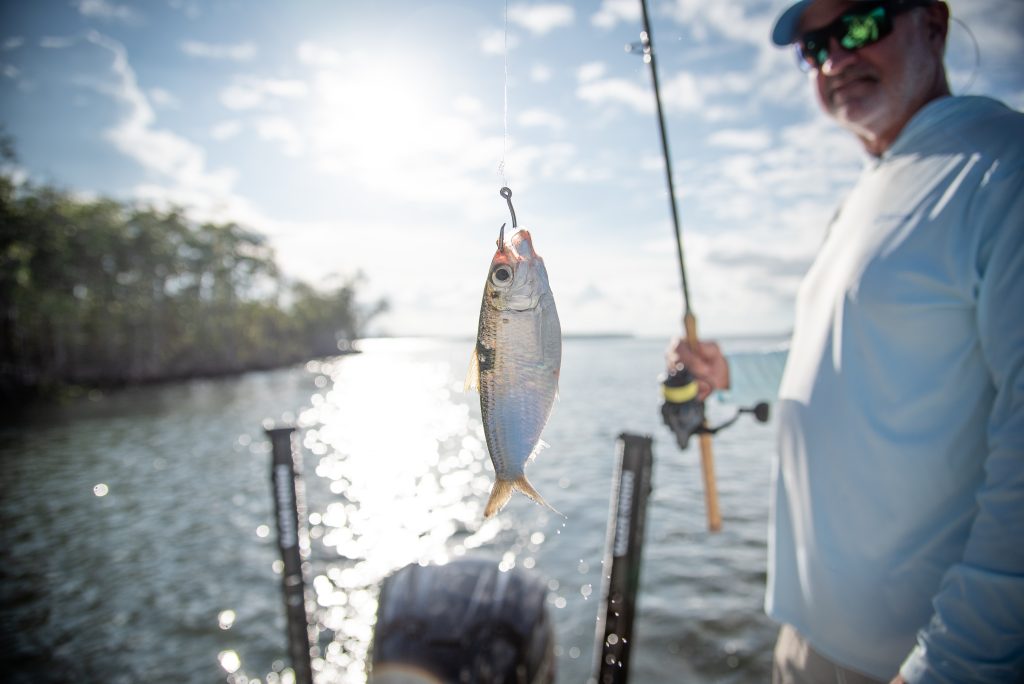 I drew a fresh pilchard from the livewell (one of the myriad silver, wide-bodied baitfish available to Florida fishermen) and lobbed it toward the lead fish. My cast fell short, and the line of tarpon swam on without giving it the slightest look. My next cast fell more toward the middle of the pack. I felt a sharp thud and watched as a fish peeled out of the school.