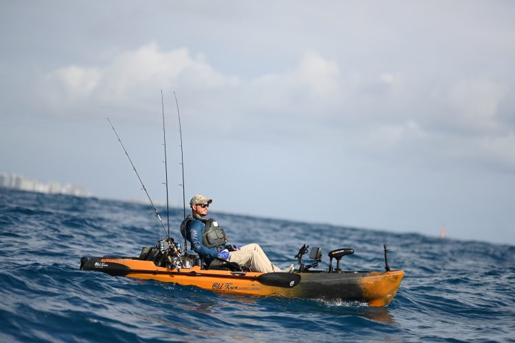 The Old Town Sportsman AutoPilot will be sold in two hulls, a 120 (12-foot) and 136 (13’6”). Both hulls are based on the Old Town Topwater’s DoubleU pontoon-style design, which provides exceptional stability. The AutoPilot 120, at 85-pound hull weight, is easier to transport, with the longer 136 is heavier (95 pounds) but better suited to offshore, open-ocean fishing.