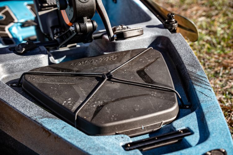 A cool bonus feature is the dedicated storage space for an extra prop under the hatch. If you ever damage a prop on an oyster bed or a rock, you’ll have a spare on hand without it floating around in your kayak.