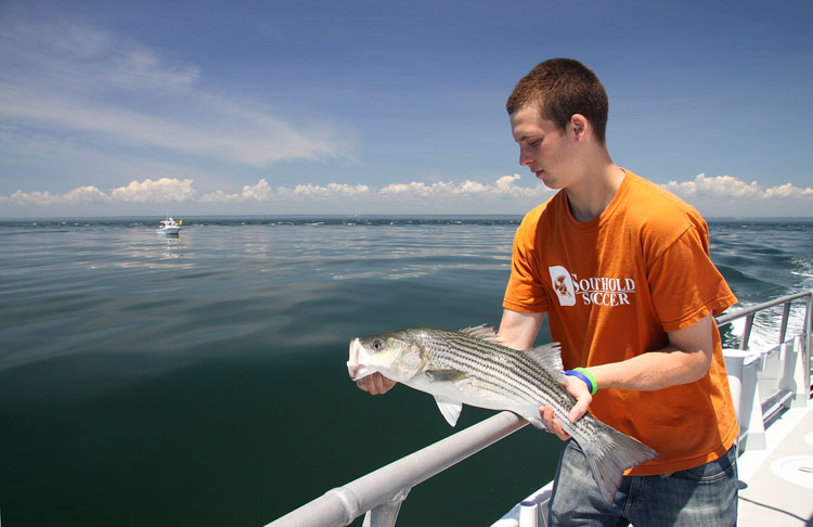 Captain Rob Spitzenberg broke into a grin as he held a keeper striped bass aloft in the shadow of Orient Point lighthouse, known locally as “The Coffee Pot.”