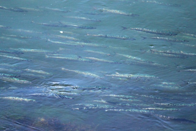 To our right, anglers began shouting, and I looked down to see a mass of nervous water making its way along the rip-rap towards my feet. Mackerel, thousands of them, had been pushed tight to the rocks by schools of big stripers. I could plainly see good-sized bass charging through the schools and picking off macks. It was so amazing to see, I almost forgot to cast. Almost.